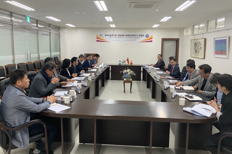 宋岩院长,中韩(烟台)产业园发展研究中心李海廷研究员、张蕾研究员分别作了主旨发言,代表团与光州全南研究院13个研究室负责人分别就新能源、海洋生物、海洋经济、自由贸易园区、港湾物流、新产业合作等领域进行深入探讨,并商定了2020年中韩学术研讨会的主题。代表团还与仁荷大学校申汉龙教授等探讨了韩国企业对中国投资困境等研究课题和中韩学生交流的形式、时间、内容等议题。