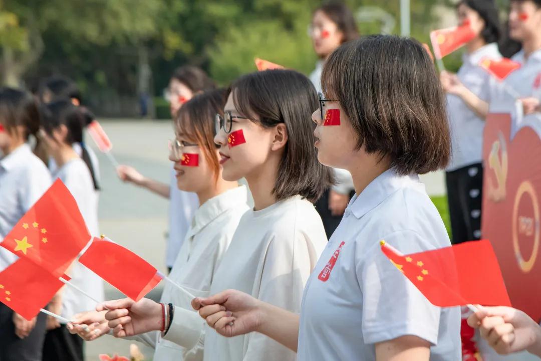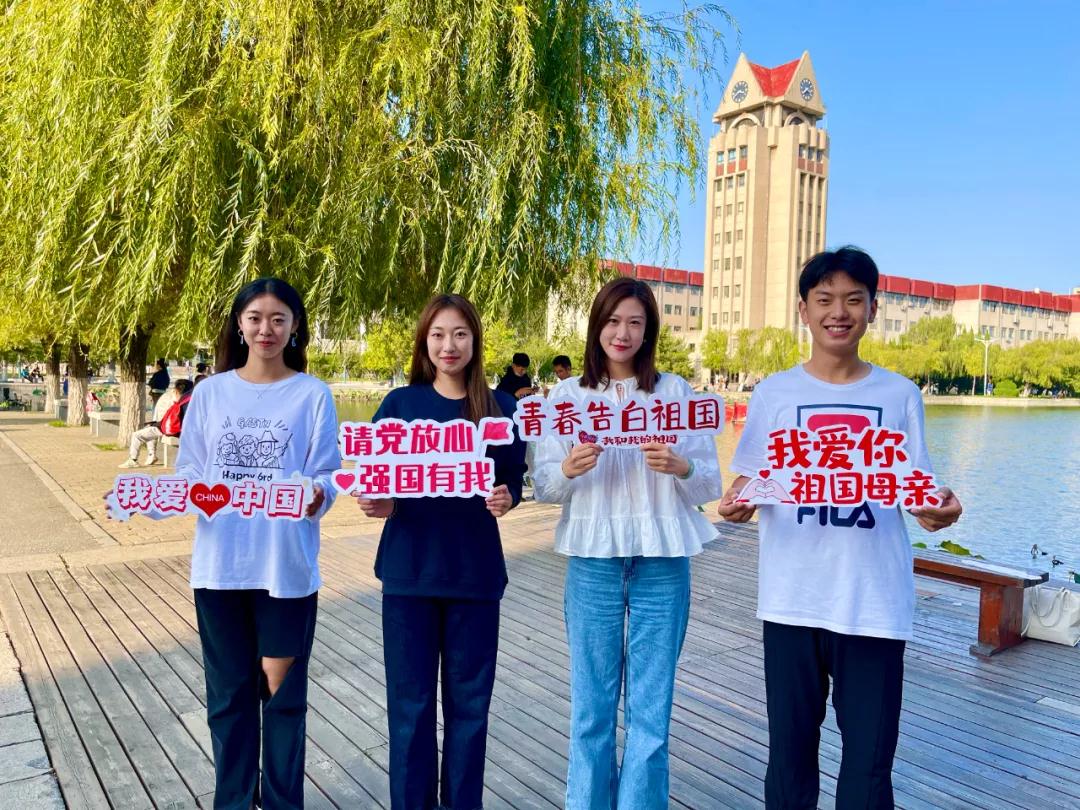 组织开展形式多样的庆祝活动。团委、学生会同学们组织新生开展“青春告白祖国”活动以及“我与祖国合张影”活动,同学们手持“我爱你祖国”“青春告白祖国”“请党放心强国有我”“祝福祖国”等标语牌,在烟大校园内打卡,诚挚地祝福祖国母亲永远昌盛繁荣。用音乐回顾历史,用歌声激发初心。“五星红旗迎风飘扬,胜利歌声多么响亮……”随着气势恢宏的旋律,新生同学们聚集在 “升腾”,挥舞着手中的国旗,随着音乐放声高歌《歌唱祖国》,表达着对祖国的热爱和美好憧憬。