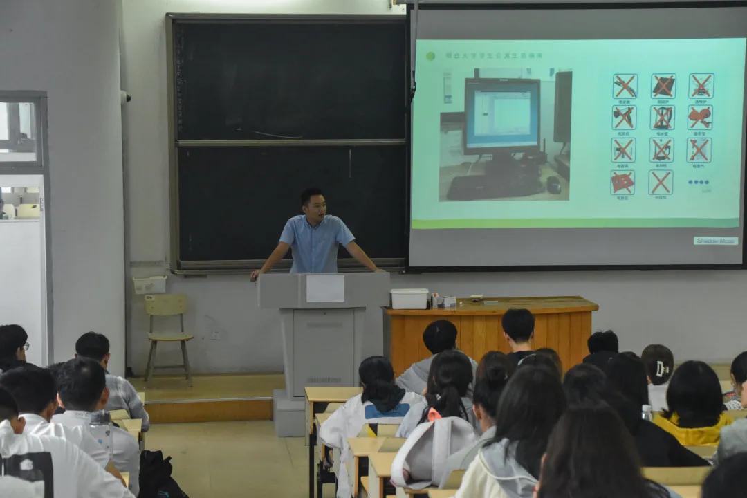 新生作“关于宿舍那点事儿”的宿舍安全教育及行为养成教育,新生班委、各宿舍舍长、部分学生代表参加。王学禹详细讲解了《17吃瓜